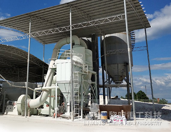 煅燒后的生石灰料由鏟車送入緩沖倉內(nèi),經(jīng)皮帶給料機(jī)均勻定量連續(xù)地送入MTW178G歐版磨磨室內(nèi)進(jìn)行研磨,接著再被風(fēng)機(jī)氣流送入選粉機(jī)進(jìn)行分級,在分析機(jī)的作用下,不符合細(xì)度要求的物料落入磨室內(nèi)進(jìn)行二次粉磨,合格的物料則通過氣流經(jīng)管道進(jìn)入旋風(fēng)集粉器內(nèi)進(jìn)行分離收集,后經(jīng)排料裝置排出即為成品。 該系統(tǒng)在封閉負(fù)壓狀態(tài)下運(yùn)行,且配備有脈沖除塵器,符合國家的清潔環(huán)保標(biāo)準(zhǔn)。